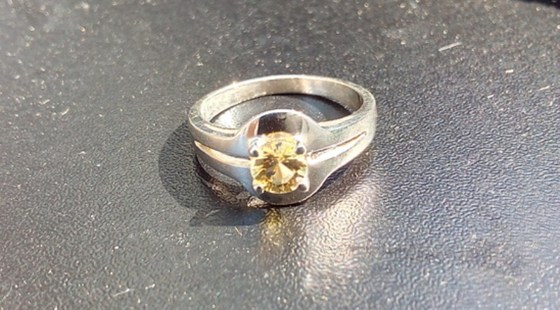 En forme de rond facetté de 5 mm de diamètre avec un contour argent de 4 mm