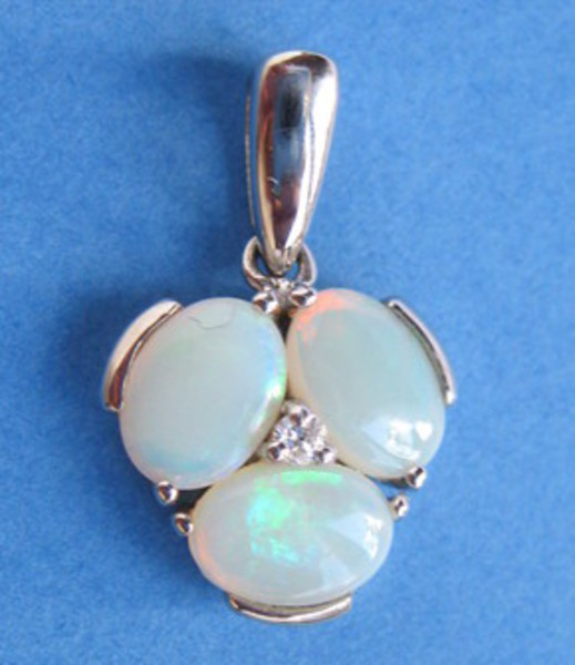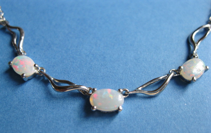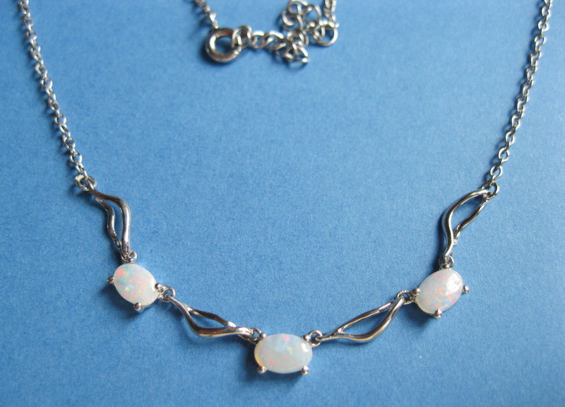 Collier chaine argent et 3 opales blanches d'Australie translucides, en ovales de 6mm de long sur 4mm de large